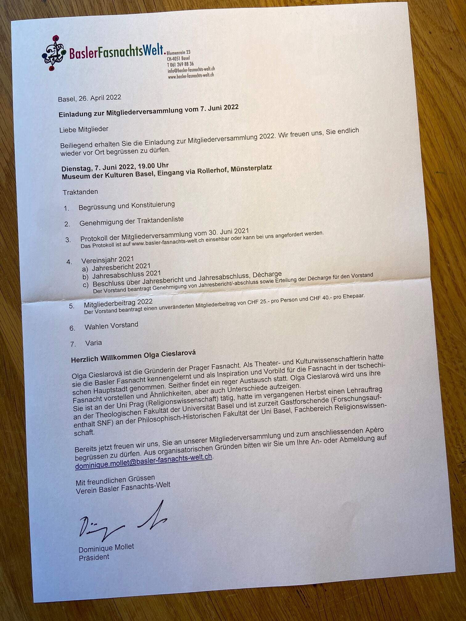 Der sicherlich spannenden Versammlung folgt ein Apèro mit Austauschmöglichkeiten zum Museum, Fasnacht sowie alles, was uns bewegt.